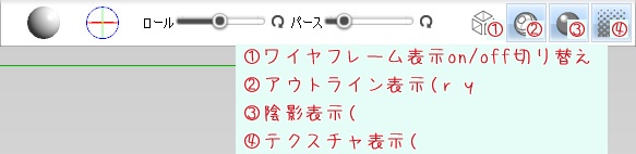 テクスチャの表示on/offや輪郭線、陰影、