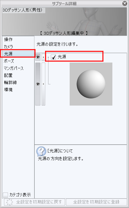 で以下の光源を有効にして頂き表示をご確認頂けますようお願いいたします。