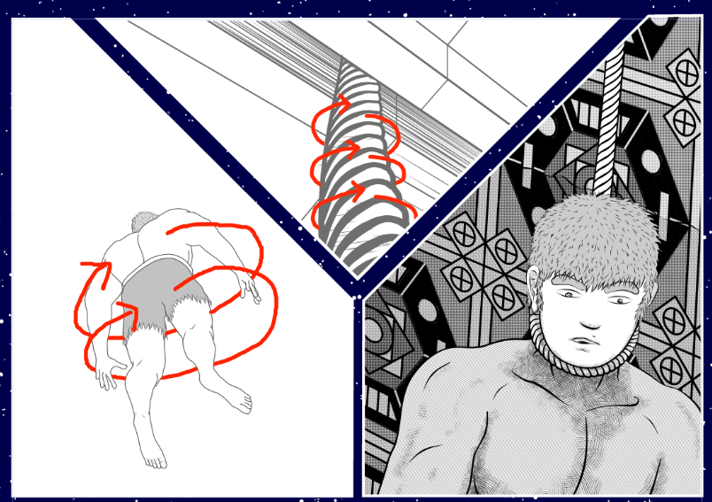 以下のようなトグロを巻いたロープが描きたいのでしょうか?