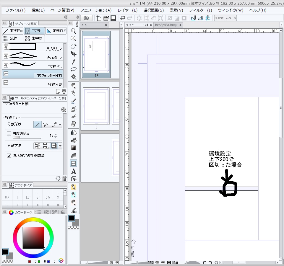 *ご使用のコマフォルダー分割サブツールを選択した状態の