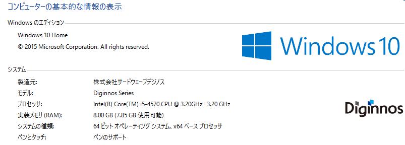 ・こちらのページをご覧いただき、「システムの種類」「CPU」