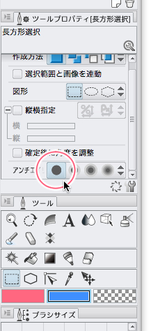 選択指定をする前にツールプロパティのアンチエイリアスを切ってください