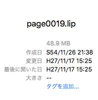 保存や新規作成の際に、日付のデータが正しくならず、困っております。 ファイルの入ったフォルダを開いた際に見れるプロパティが 添付画像のように、日付がおかしくなっております。 (だいたい昭和45年1月1日になるのですが、たまに全く違う日付になることもあります) 保存の際にも、違う日付でセーブされるようで、 以前セーブしたときより古い日付になるのか 「外部で変更された可能性があります」などの警告が出ます。 http://www.clip-studio.com/clip_site/support/request/detail/svc/54/tid/78748 こちらの内容と似ているのですが、当方は内臓HDDで保存しております。 PCの時計は正しくセットされており、 他のアプリケーションでは正しい日付で保存されております。 ![]() ![]() ![]() ------------------------------------------------------------ ■バージョン: 1.5.6ですが、前のバージョンから起こっていました。 ■グレード DEBUT( ) comico( ) PRO( ) EX( ○ ) ■OS Windows XP( ) Windows Vista( ) Windows 7 ( ) Windows 8( ) Windows 8.1( ) Windows 10( ) MacOS X 10.5( ) MacOS X 10.6( ) MacOS X 10.7( ) MacOS X 10.8( ) MacOS X 10.9( ) MacOS X 10.10( ) MacOS X 10.11( ○ ) その他( ) ------------------------------------------------------------ |