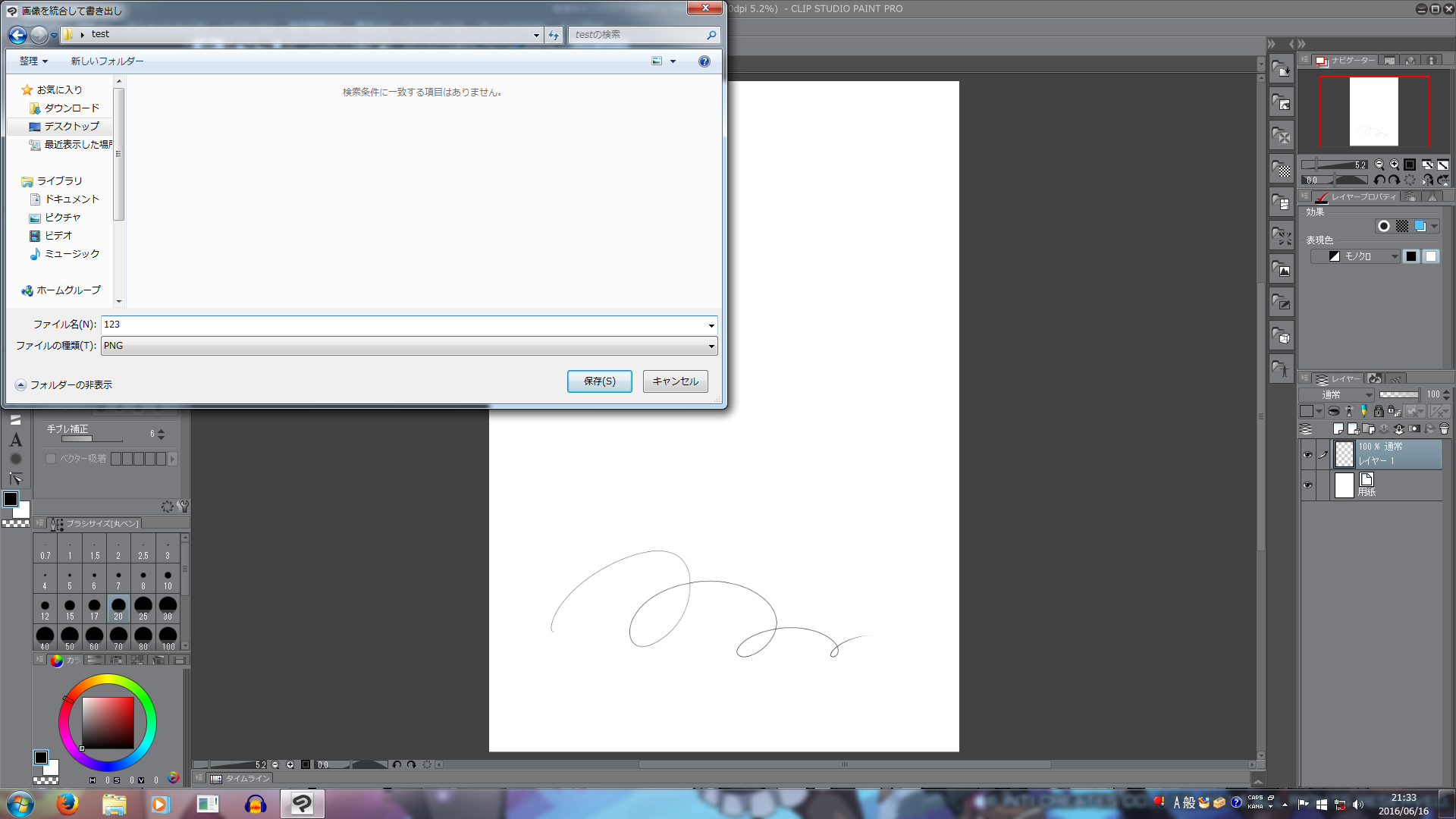 何か線を描写した後、[画像を統合して書き出し]のPNGとJPGで