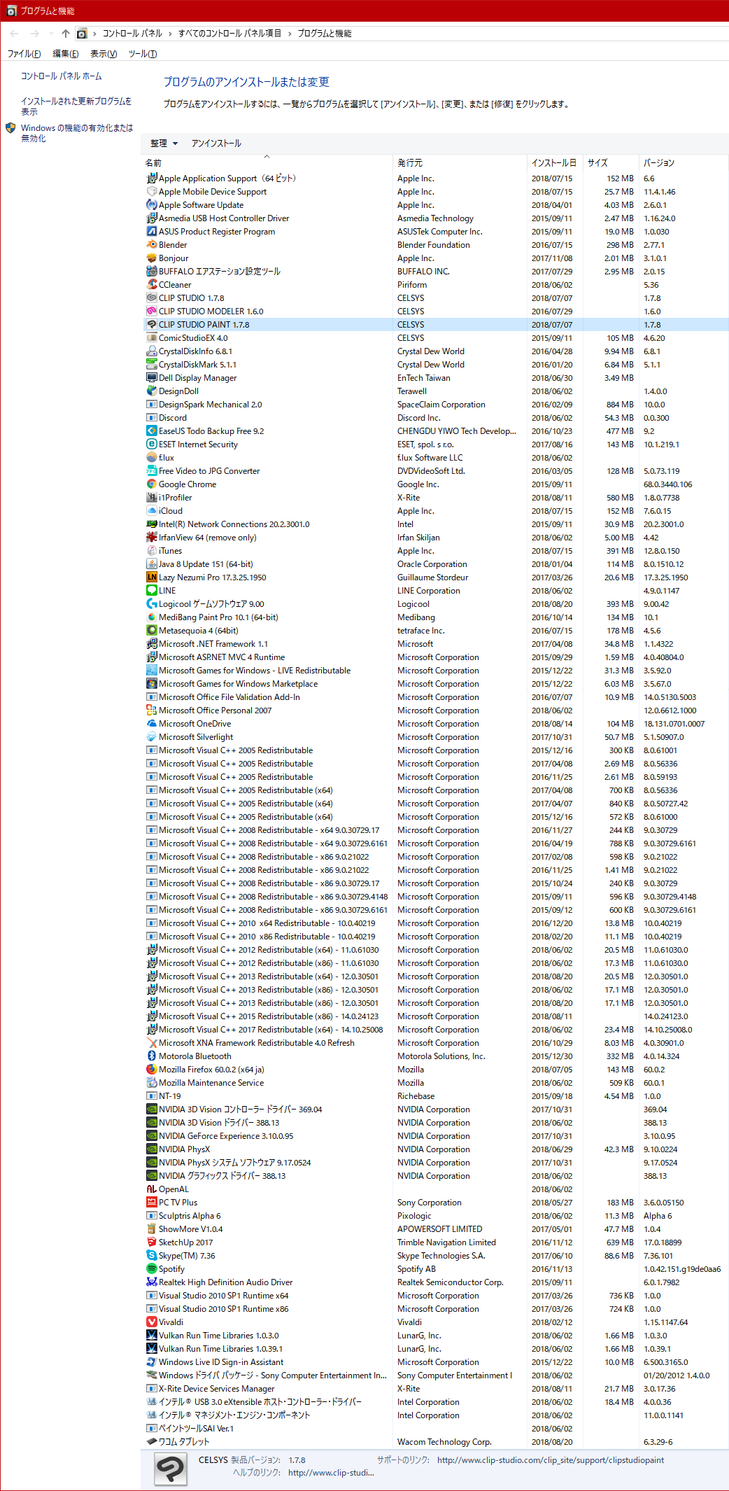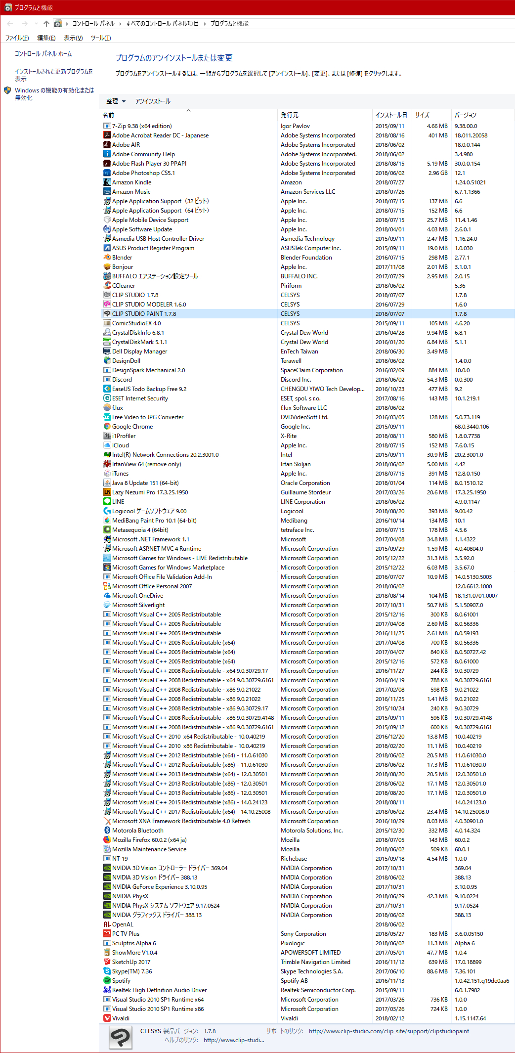 (プログラムと機能)]を選択して表示される画面のすべての項目が