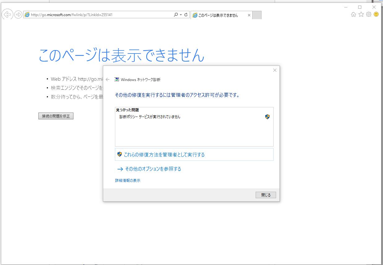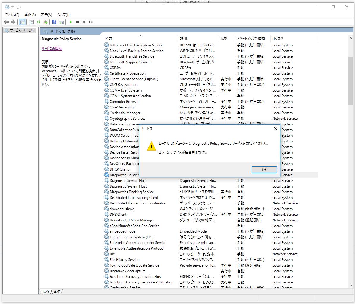 “診断ポリシーサービスが実行されていません”と出ます。