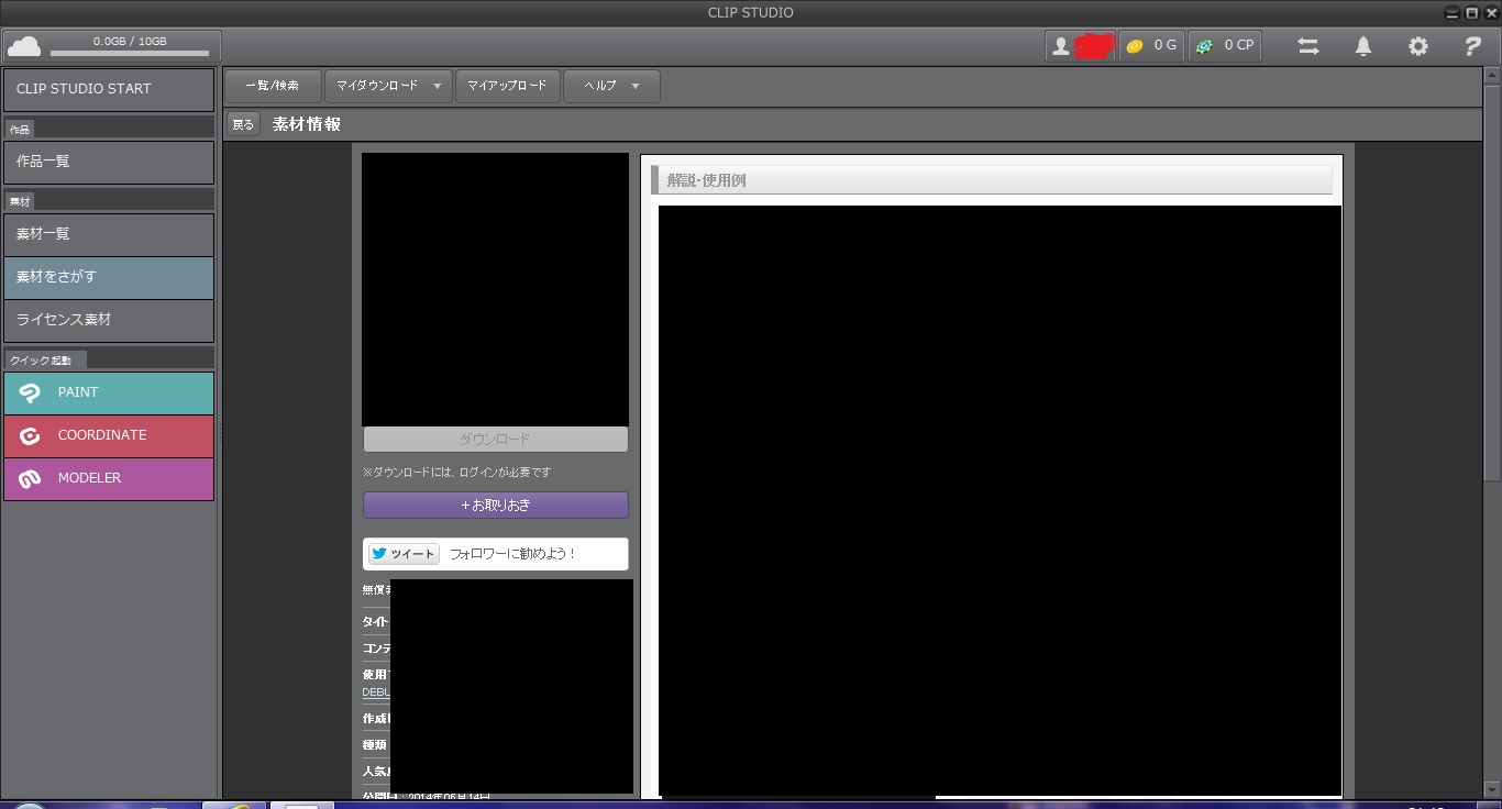 クリスタで素材をダウンロードしようとすると、ダウンロードボタンの下に「※ダウンロードにはログインが必要です」と表示され、ダウンロードができません。 しかしクリスタ自体には既にログインしていますし、再起動して何度もインアウトを繰り返しましたが同じ状況です。 解決策をどうかお願いします。 ![]() ---------------------------------------------------- ■素材について 素材名: 素材のURL: ■Webブラウザ InternetExplorer7( ) InternetExplorer8( ) InternetExplorer9( ○ ) InternetExplorer10( ) Internet Explorer11( ) Microsoft Edge( ) Firefox( ) Google Chrome( ) Safari( ) その他( ) ■OS Windows XP( ) Windows Vista( ) Windows 7 ( ○ ) Windows 8( ) Windows 8.1( ) Windows 10( ) MacOS X 10.5( ) MacOS X 10.6( ) MacOS X 10.7( ) MacOS X 10.8( ) MacOS X 10.9( ) MacOS X 10.10( ) MacOS X 10.11( ) その他( ) ---------------------------------------------------- |