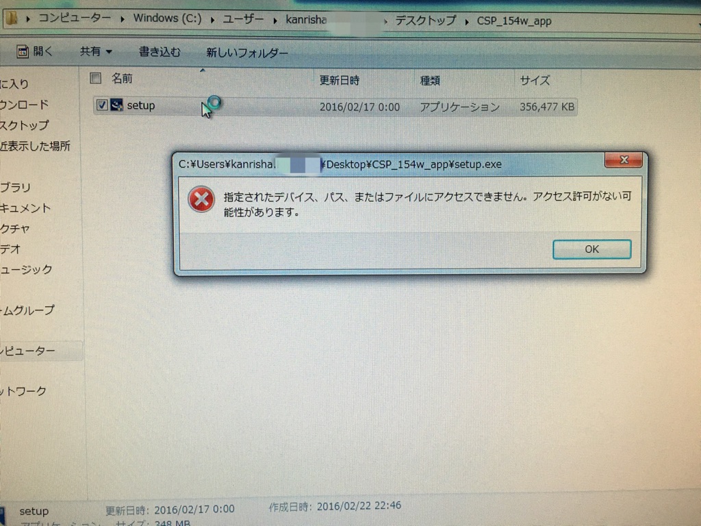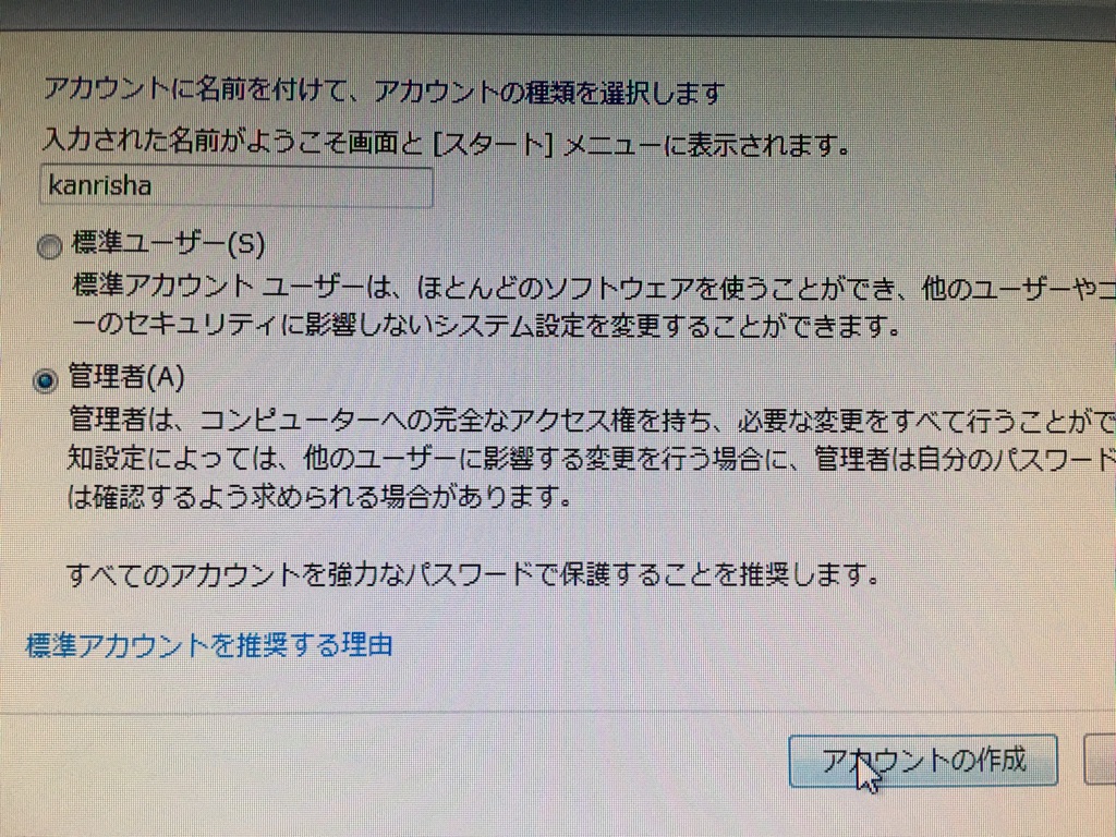 お手数ですが、管理者権限の付与されたアカウントでPCにログイン