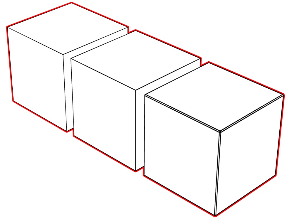 ※バケツツールで単色テクスチャ画像を全ての面に塗りつぶしていれば内側の輪郭線もされます。