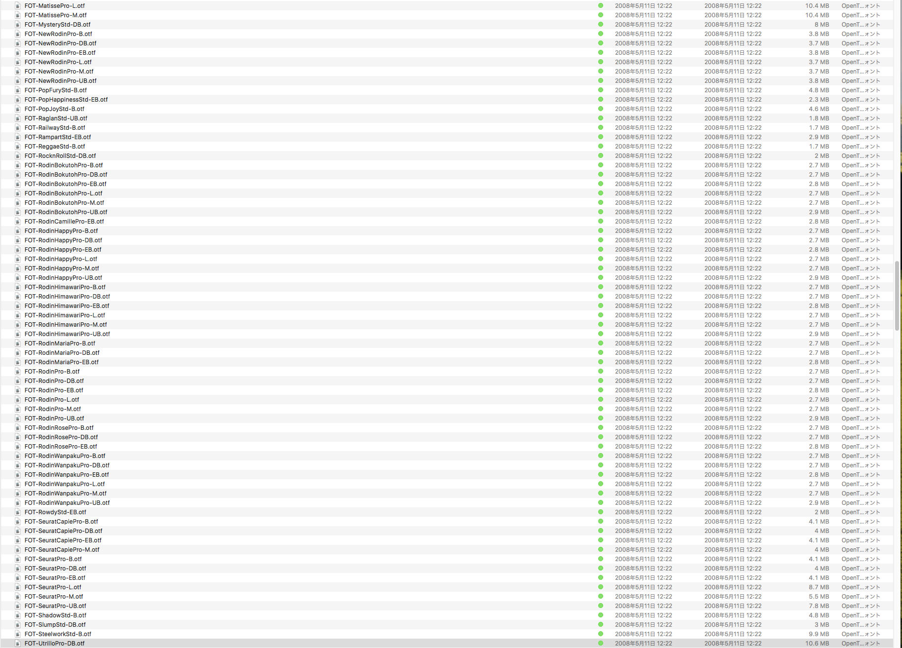 ・[Finder]の[移動]メニュー→[アプリケーション]フォルダを開き、[Font Book(.app)]を実行し、