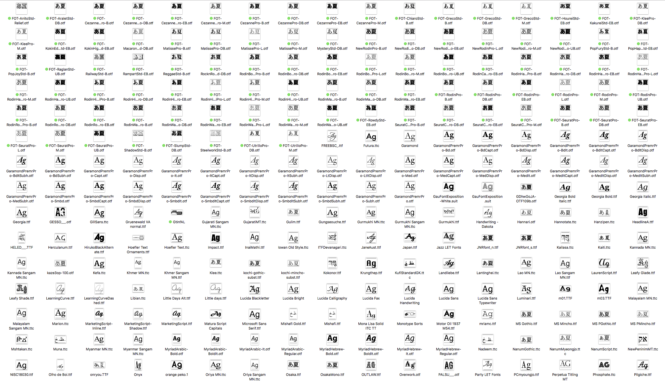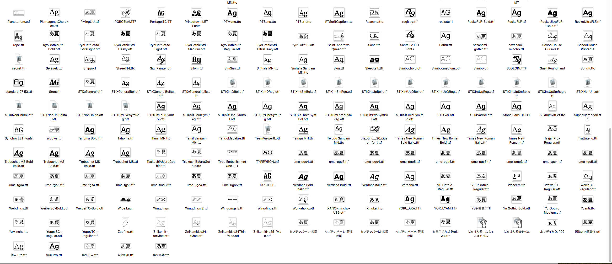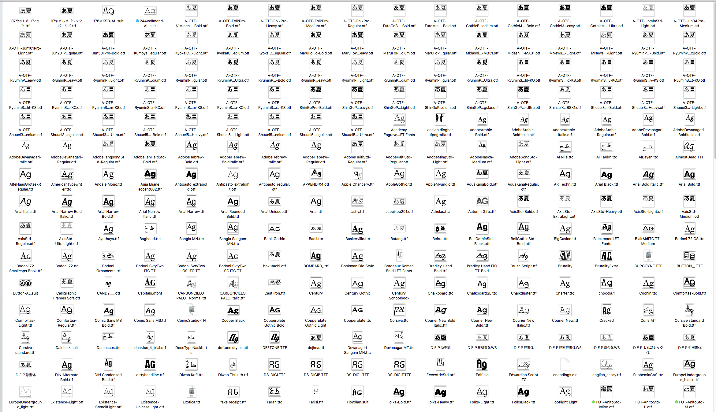 再度ライブラリ内のフォントを今度はアイコンでスクショしてみました。