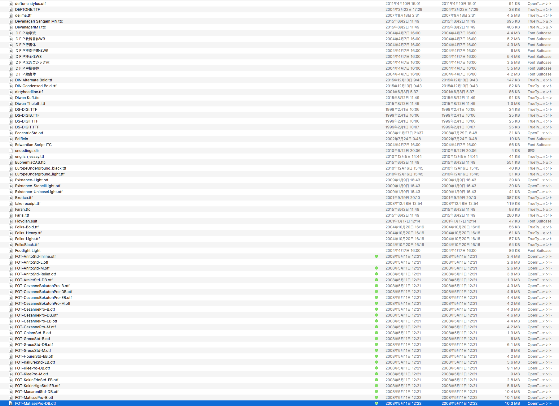 ・以下の場所にそれぞれあるFontsフォルダを開いて表示されるすべてのファイルが
