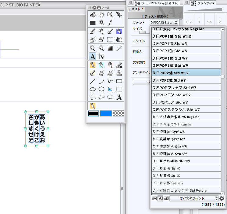 それどころかテキスト種類の欄に全く表示すらされなくなってしまったフォントもあります。