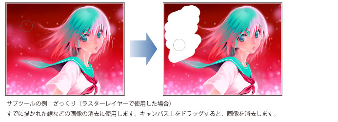 サブツールの例:ざっくり(ラスターレイヤーで使用した場合)