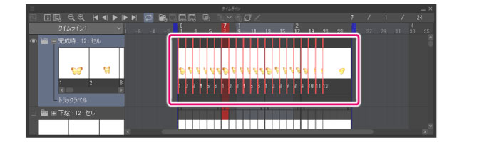 [タイムライン]パレットから、アニメーション素材として登録したいクリップを選択します。