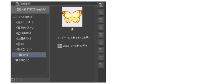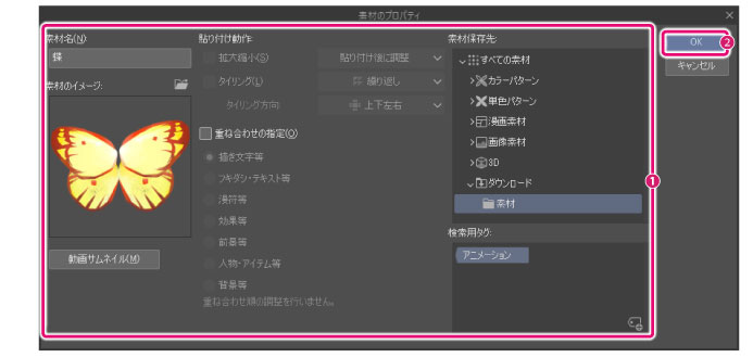 アニメーション素材を、[素材]パレットに登録する方法を説明します。