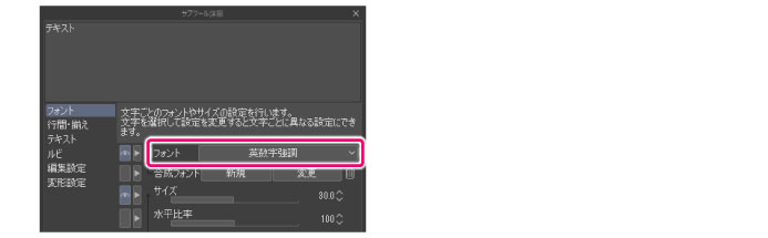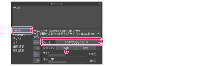 [サブツール詳細]パレットから、合成フォント作成ダイアログを表示します。