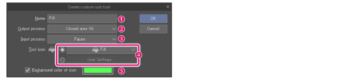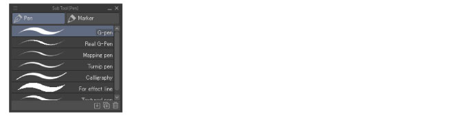 Displays the [Create custom sub tool] dialog box to add the current settings on the [Tool Property] palette as a new sub tool.