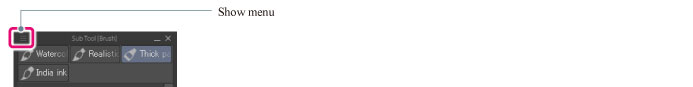 To show the [Sub Tool] palette again, select the palette from the [Window] menu > [Sub Tool]. If you are using a Smartphone, tap the icon on the palette bar. |