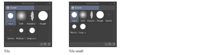 The sub tool and tool group layout on the palette can be changed by dragging the icons while holding down Ctrl. |