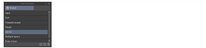Resets the settings on the [Sub tool] palette and restores the selected sub tool settings to their initial values.