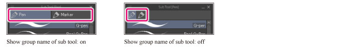 When turned on, displays the sub tool group name next to the [Switch group] icon.