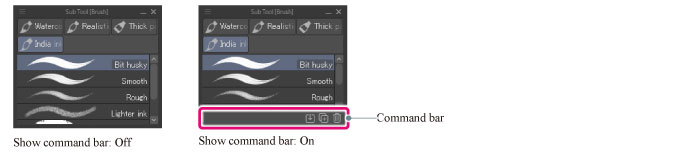 When turned on, the command bar is displayed on the [Sub tool] palette.