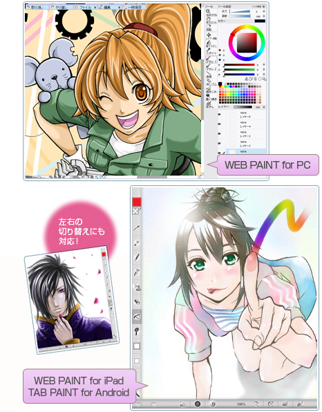 PC用とタブレット端末用のペイントツールで、場所や端末を選ばず気軽に作品制作を行えます。