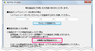 アップデート完了後、RETAS STUDIOを起動し、画面の案内にそって体験版の試用登録を行ってください。