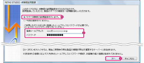① [今すぐ体験版の試用登録を行います。]を選択します。