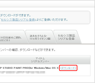 なお、CLIP STUDIOシリーズ(PAINTなど)のライセンスを切り替える場合(体験版→製品版、PRO→EX、バリュー版→パッケージ版 など)の手順については「優待・アップグレード後のシリアルナンバー再入力」をご覧ください。
