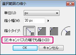 また、[選択範囲の縮小]ダイアログに[キャンバスの端でも縮小]チェックボックスを追加しました。