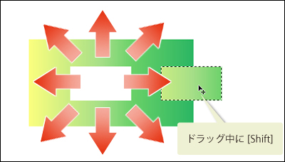 選択範囲をドラッグして移動している途中で、[Shift]キーを押すと、ドラッグ開始点から45°刻みに移動方向を制限するようになります。