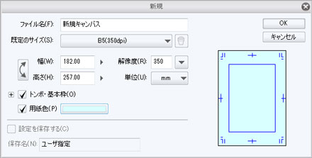 - キャンバスを作成したあとに、基本枠とトンボを設定できるようになりました。