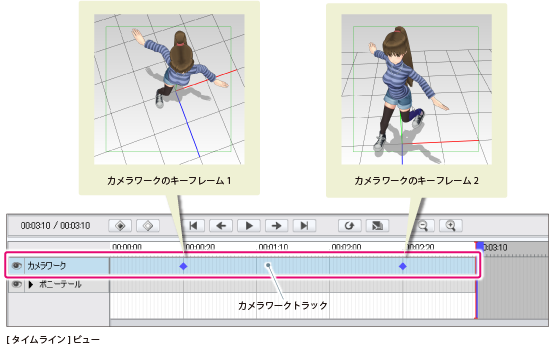 カメラの位置・向きなどを、[タイムライン]ビューに記録できるようになりました。