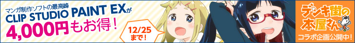 また、CLIP STUDIO PAINT EX 2年ライセンス版を9,500円でご購入いただけるお得なキャンペーンも、12月25日(木)に終了予定です。CLIP STUDIO PAINT EXをお持ちでないお客様は、最安値でPAINT EXを入手でき、さらにPDF入出力プラグインも無償で手に入るこの機会にぜひご検討ください。