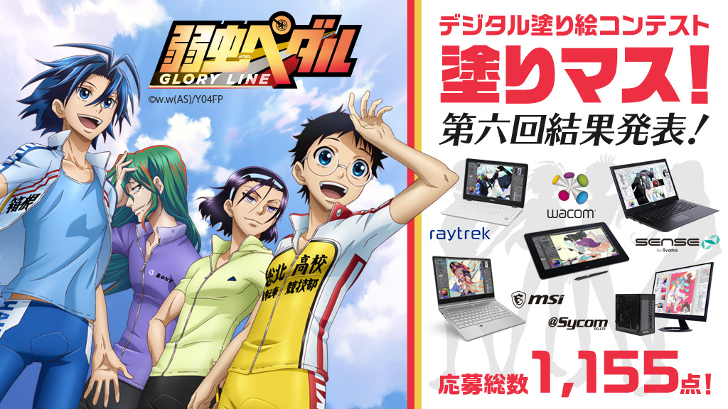 「塗りマス!」はコンテストサイトから指定の線画をダウンロードして自由な端末/ソフトで彩色し、Twitterにハッシュタグをつけてツイートすることで応募できる塗り絵コンテストです。第六回は人気の漫画作品「弱虫ペダル」TVアニメ版のスタッフによる描き下ろしイラストの塗り絵を募集し、20日間で1,155点の作品が応募されました。
