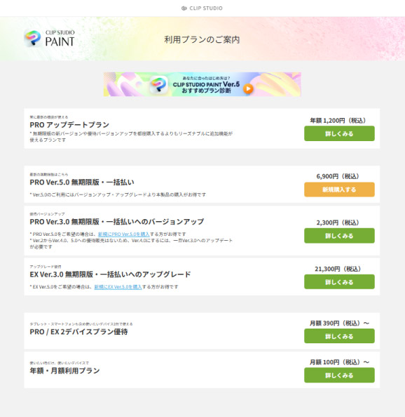 ※年額・月額利用プランへの優待は、CLIP STUDIO PAINT 無期限版・一括払い 1ライセンスにつき一度だけお申込みいただけます。