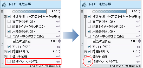 ※ツールセット「レイヤー複数参照」は初期設定で[すべてのレイヤーを参照]の設定になっています。