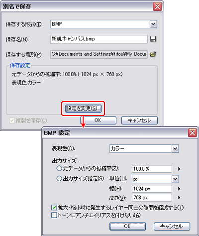 ・BMP形式…Windows標準の画像形式です。ファイルを圧縮しないためサイズが大きくなります。