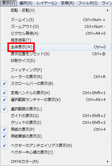 4.引き延ばしたら、[表示]メニュー→[全体表示]を選択します。