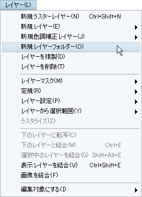 4.彩色までが完成したら、[レイヤー]メニュー→[新規レイヤーフォルダー]を作成し、レイヤーフォルダーに主線と彩色部分のレイヤーを格納します。