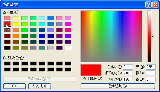 3.[色の設定]画面が表示されるので、お好みのカラーを選択し、[OK]ボタンをクリックします。