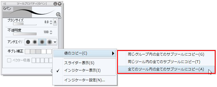 ComicStudioの"ペンの重さ"に相当する設定はありますか? |
