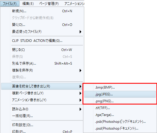 同人誌制作など、印刷目的で制作したマンガをWeb用に変換してWebサイトに アップロードする場合、そのままのサイズだと大きすぎるため、アップロード自体が 出来なかったり、Webサイト側で縮小されて画質が劣化するなどのトラブルが起きます。 適切な形式も印刷用データとは異なるので、下記の手順での書き出しを お試しください。 【1】 [ファイル]メニュー→[画像を統合して書き出し]から任意の形式を選択します。 Webサイト用の画像の場合、BMP・JPEG・PNG形式が一般的ですが、 念のためアップロード先が対応している形式をご確認ください。 ![]() 【2】 書き出しダイアログが出るので、保存先を決めて[保存]を押します。 【3】 書き出し設定ダイアログで、下記の設定を行います。 ①プレビュー: [出力時にレンダリング結果をプレビューする]のチェックをONにします。 こうすることで、実際に書き出しする前に出力後のイメージを確認出来ます。 ②出力範囲: [トンボの内側まで]にすることで、余白の無い、製本時同様の状態で出力できます。 ※EXの機能なので、PROをお使いの場合は、必要に応じて書き出し前に[編集]メニュー→ [キャンバスサイズを変更]からあらかじめ余白をトリミングします。 ③表現色: [グレースケール]にします。原稿をモノクロで描いた場合も、この設定にすればWeb用に 綺麗に縮小出来ます。 ※カラー作品の場合は、ここを[RGBカラー]にすれば、他の設定を同じにすることで 同様にWeb用に書き出せます。 ④色の詳細設定: [レイヤーに付与されたトーン効果を有効にする]のチェックを外します。 トーンの網点は印刷用なので、Web上できれいに表示するには、網点を無効にした方が良いです。 ⑤出力サイズ: [出力サイズ指定]にチェックを入れます。※解像度は変更する必要はありません。 単位は必ず[px]にし、幅と高さの数値を入れます。 大体1000px以内に収めるとWebに適したサイズになりますが、Webサイトによってはサイズ 上限を設けている場合もあるため、アップロード先の要項を確認の上、適正なサイズに 設定してください。 ⑥拡大縮小時の処理: マンガの場合でも[イラスト向き]にします。 原稿をモノクロで制作していた場合でも、この設定にしておくとなめらかに縮小出来ます。 なお、[ラスタライズ]の項目は[コミック向き]を選択した場合に影響があるものなので、 ここではどちらが選択されていても大丈夫です。 ![]() 上記の設定に出来たら、[OK]を選択します。 【4】 書き出しプレビューダイアログが出るので、[100%]アイコンをクリックすると 表示倍率が[100]になり、実際にWebサイトに表示されるサイズで確認が出来ます。 必要に応じてダイアログのウィンドウサイズを大きくし、ご確認ください。 ![]() 問題が無い場合は、[OK]をクリックして書き出しを実行すれば完了です。