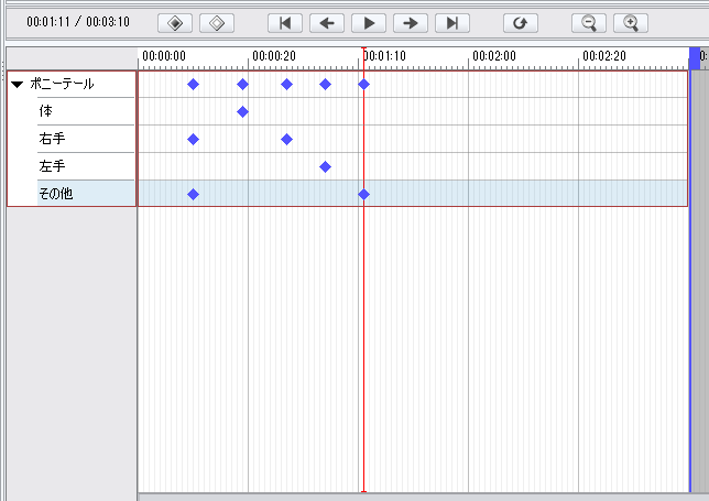 ▼部分をクリックすると、手や体ごとの[キーフレーム]が表示されます。
