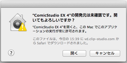 「開発元が未確認のため開けません」というエラーが表示され、アップデータやソフトウェアを実行できません。 |