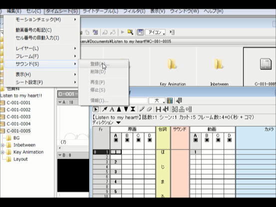 もしタイムシートだけを作成されている場合はサウンドの登録が出来ません。