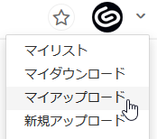 [マイアップロード]を選択し、表示される画面にて素材の横に