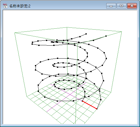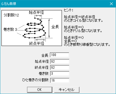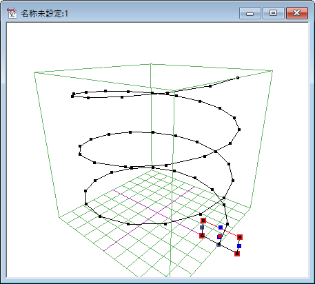1.今回と同様の数値設定でらせん曲線を作成します。